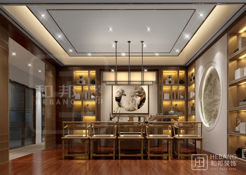 運用現(xiàn)代感曲線、明快色彩、精致陳設(shè)和混搭風(fēng)中式家具組合,打造出一個具有深厚文化底蘊同時又兼具現(xiàn)代、時尚的辦公空間。