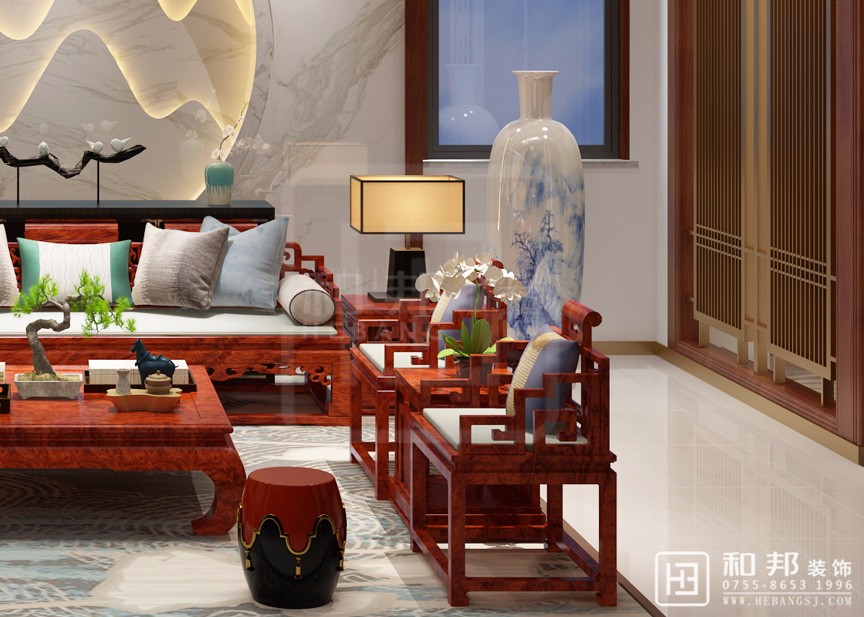 運用了中式的傳統(tǒng)元素,并與當(dāng)代人的審美需求相融合,提煉了其中經(jīng)典元素并加以簡化和豐富。