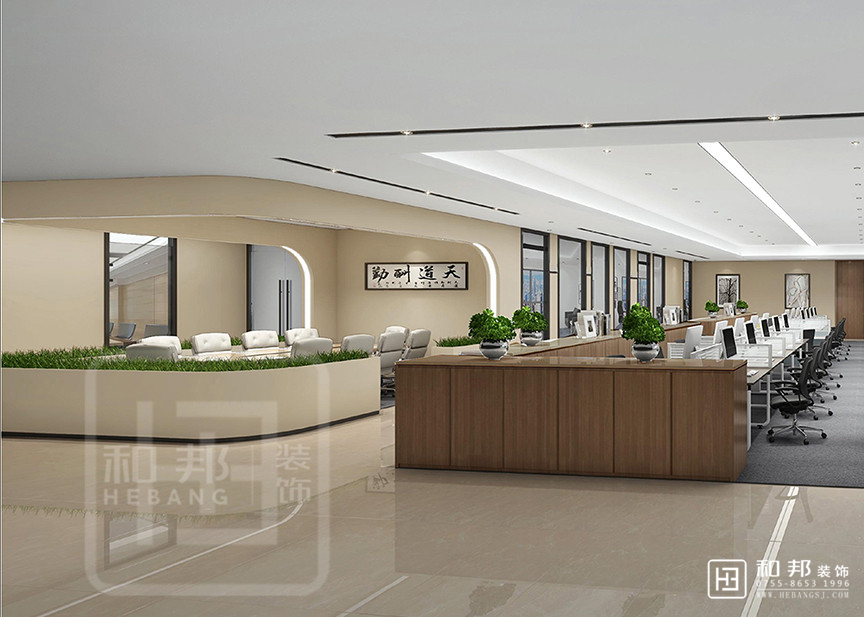 設(shè)計(jì)說(shuō)明 | 本案使用鯤鵬、迎客松等元素結(jié)合 ,綠色辦公的理念,表達(dá)其企業(yè)文化,寄予集團(tuán)合作共贏、蓬勃向上的期望。 |