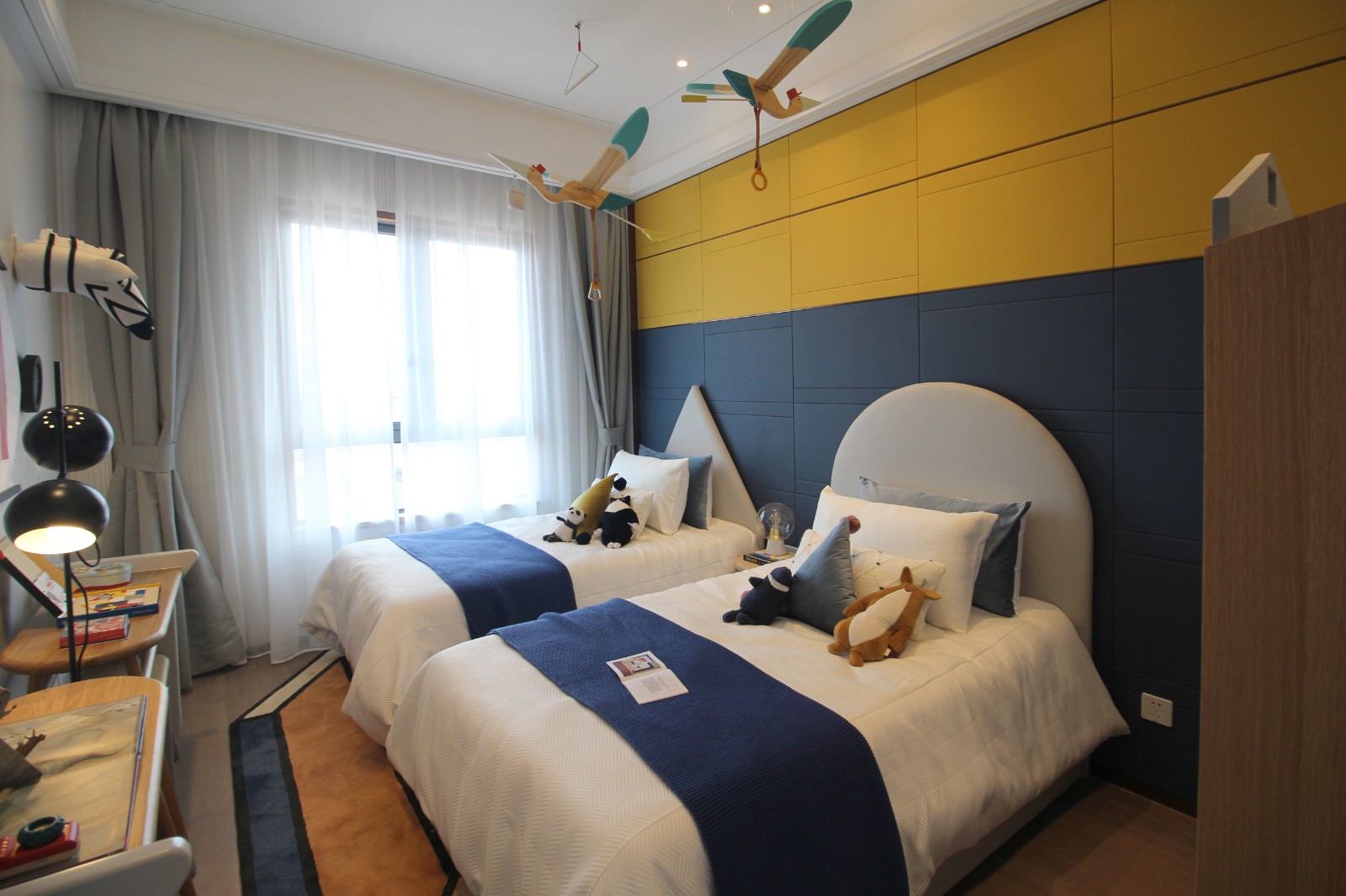 男孩房承載了對世界的好奇,吊燈采用飛舞的蜻蜓為概念,色彩的變化總是超出預(yù)期,似乎沒有規(guī)律又充滿節(jié)奏,雙子的家具布局更加靈活多變,強(qiáng)烈的色彩對比跳脫卻暗合空間主人的個性。