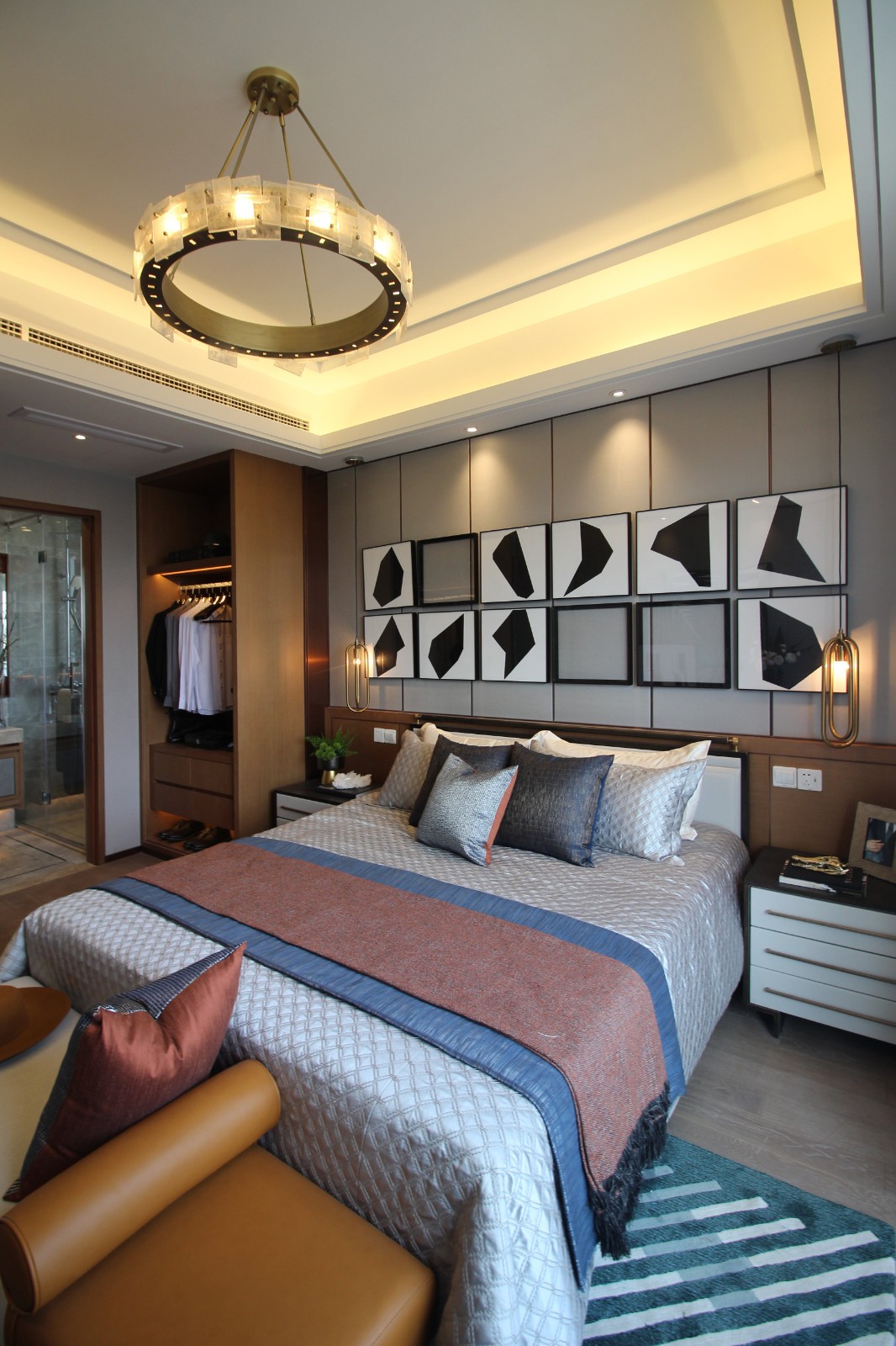 二層承載了主人休憩與互動的空間,由主臥、男孩房、親子互動區(qū)組成,以舒適、尺度為訴求點(diǎn)。主臥利用空間尺度劃分為睡眠區(qū)與活動區(qū),強(qiáng)調(diào)閑適與舒適感。