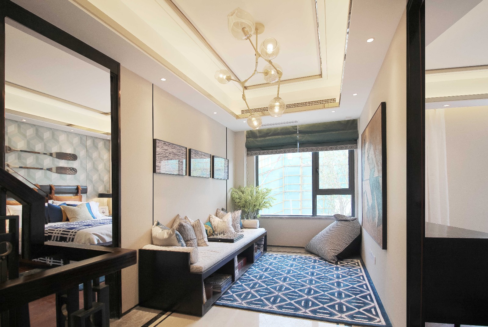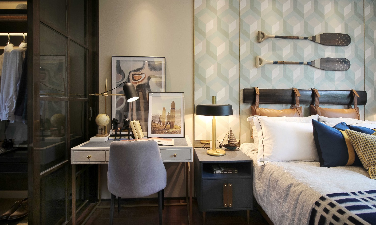 男孩房以藍(lán)色為空間主色調(diào),我們以藍(lán)色與白色的對(duì)比來(lái)延續(xù)空間的活力。書(shū)桌上靜靜安放的書(shū)籍,訴說(shuō)著主人愛(ài)好與故事。