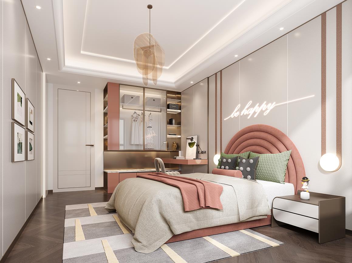 一層次臥,在家人們獨自的臥室空間中,我們針對不同成員的使用習(xí)慣,進行空間元素、材質(zhì)與色彩的調(diào)配。整體色調(diào)以淺色素雅為主,營造靜謐平和的空間基調(diào)。