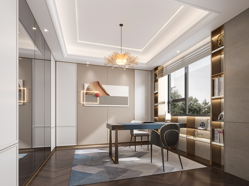 負一層主要工作臺作為空間的穩(wěn)定面,造型簡潔飄逸的燈飾,猶如流星的痕跡,靈動跳躍在空間之中,精致優(yōu)雅且不失穩(wěn)重。