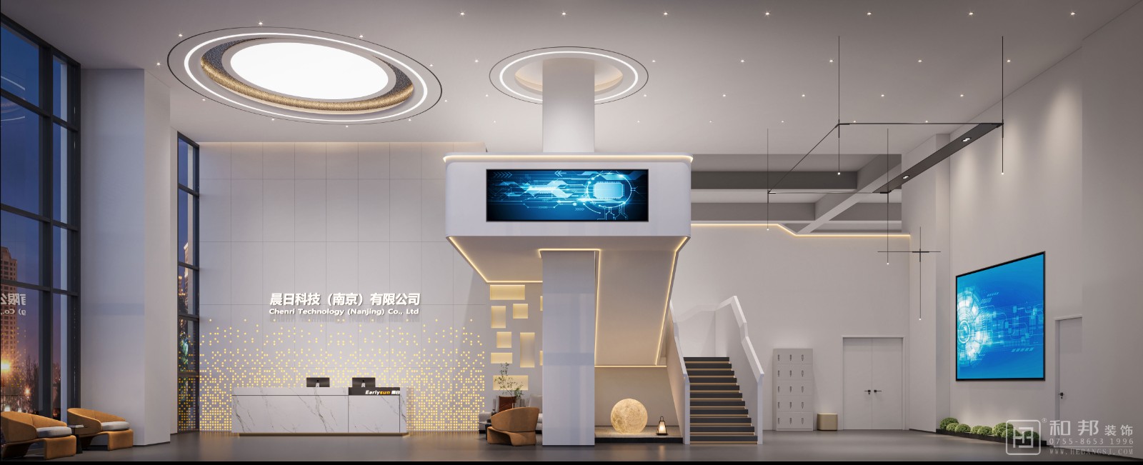 設(shè)計說明 | 本案以 “宇宙探索” 為脈絡(luò),頂面圓環(huán)似恒星散發(fā)能量,接待區(qū)星光點飾如宇宙塵埃。樓梯旁球形燈模擬月球,呼應(yīng) “晨日” 之名,將科技公司與日月星辰關(guān)聯(lián),營造充滿想象力的宇宙探索氛圍,讓空間成為連接現(xiàn)實與宇宙遐想的載體 。 |